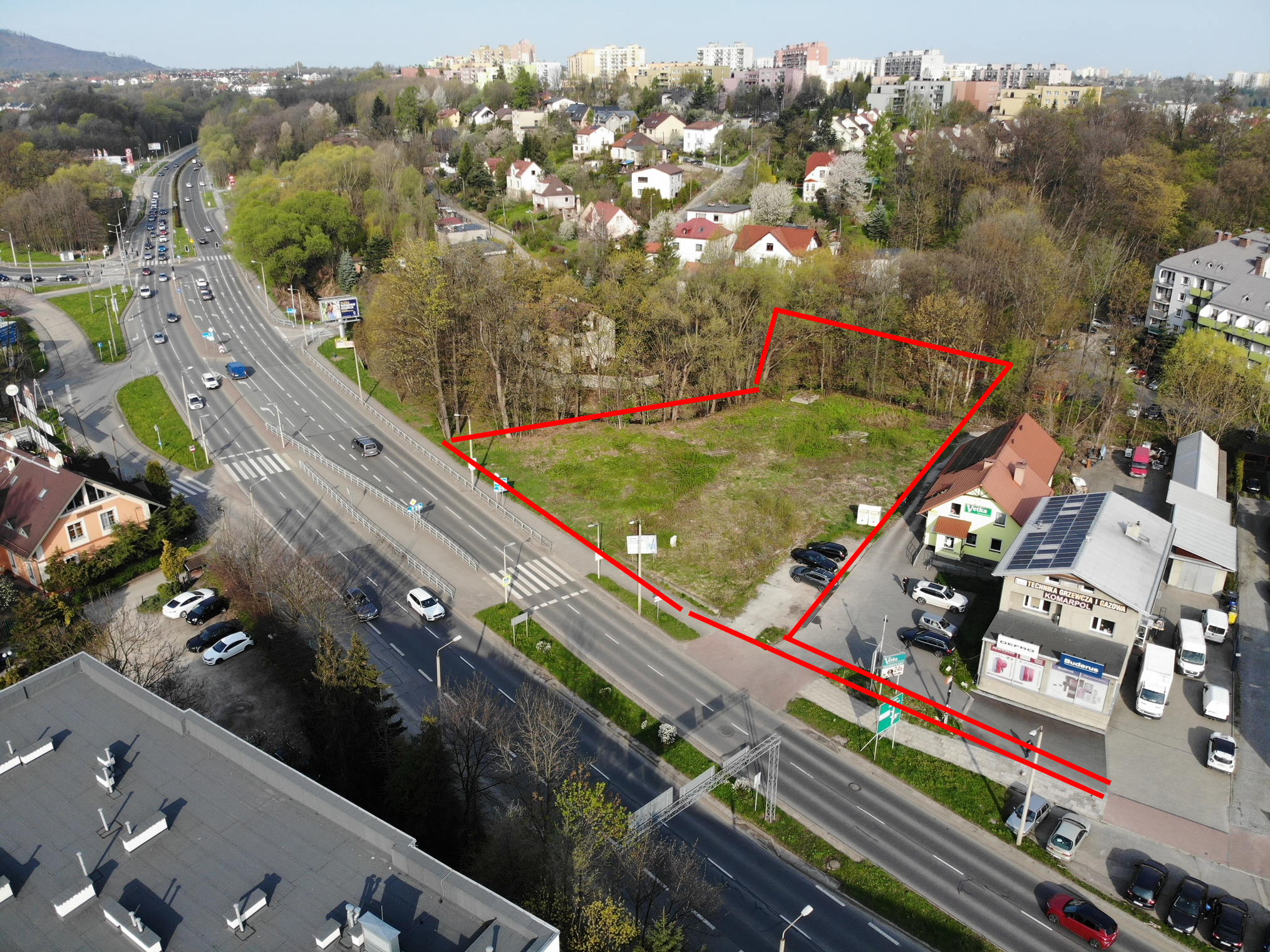 Nieruchomość gruntowa położona w doskonałej lokalizacji – przy Alei gen. Władysława Andersa w Bielsku-Białej, w pobliżu głównego skrzyżowania i centrum handlowego Gemini Park.